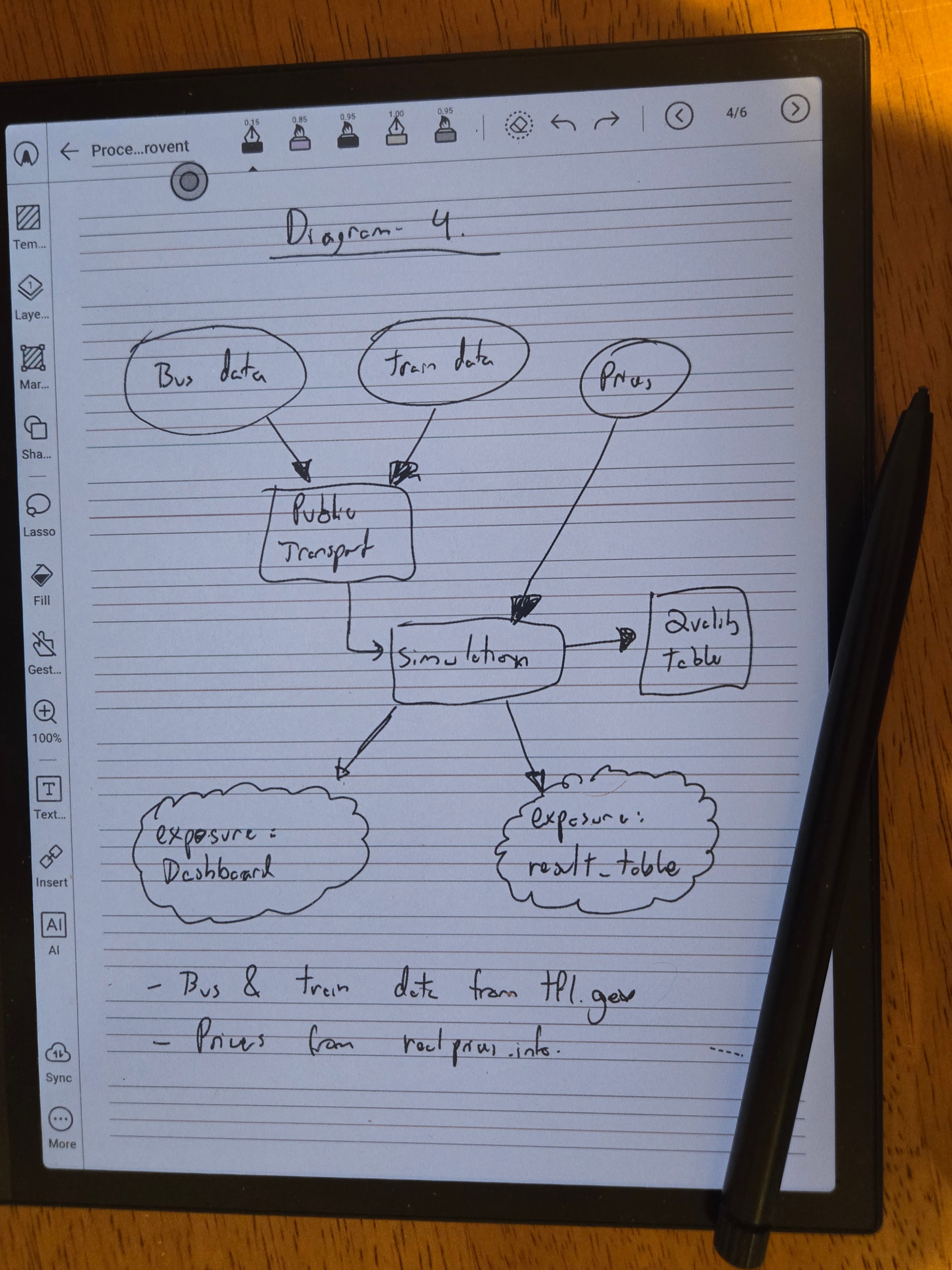 I went through the Boox sync options: BOOXDrop, WebDAV, Obsidian, the various export formats (vector PDF, bitmap PDF, .note) that appear in the UI. Most had friction or lock-in I didn’t want. Then, as a test, I drew a quick diagram and asked the LLM to convert it to Mermaid.